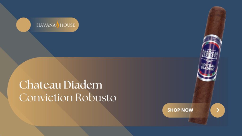 The Chateau Diadem Conviction Double Robusto will keep you guessing the whole way through. It starts off creamy with notes of cocoa and hazelnut, before developing hints of coffee and earthiness. Once rolled, each cigar is left to rest for six months to allow the tobacco to marry and evolve, to create a cigar that is subtle tasting, rich in aromas and wonderfully complex with a beautiful evolution.