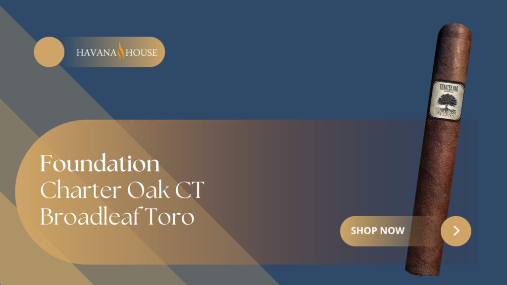 A Connecticut broadleaf providing rich darkness and all the right spices, the Foundation Charter Oak CT Broadleaf Toro Cigar is very impressive. The cigar has notes of rich earth, and natural sweetness with a medium to full smoking experience.