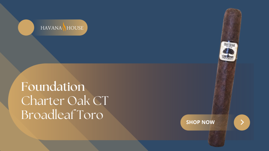 Our Cigar of the Month for August is the Foundation Charter Oak CT Broadleaf Toro Cigar. Read our review below, or shop now to enjoy this cigar for yourself with our August discount.