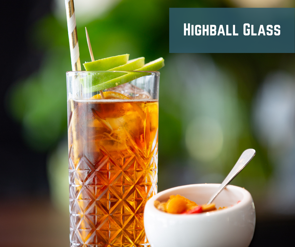 The highball is a tall, straight glass that is used to make the simple cocktail of whisky and soda.