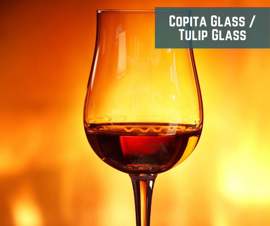 The Glencairn glass has a similar tulip shape to the Copita glass; however, it also has a much shorter stem. This makes the glass more sturdy and stable while still offering advanced aroma appreciation qualities.