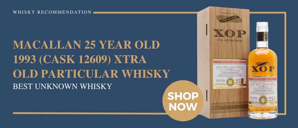 You can find a Macallan bottled 25 Year Old whisky for well over £2000, so not only is this a relative bargain but an exceptional showcase of what high-end whisky is all about. The nose has rich spices and sweet vanilla cream.