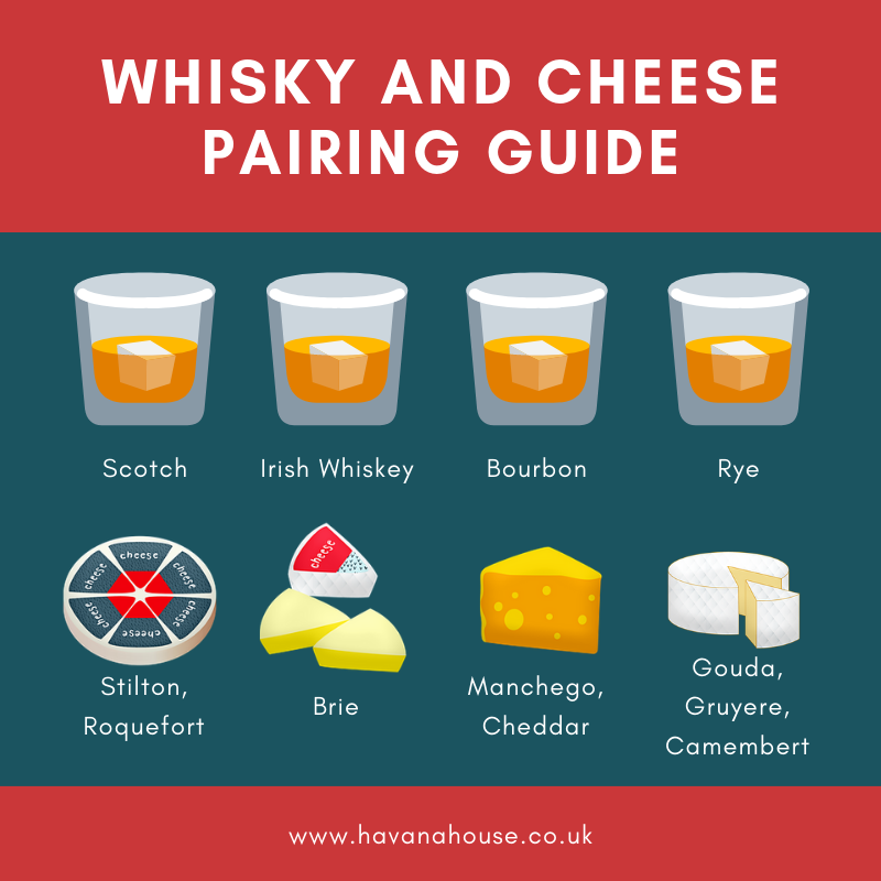 Like with pairing wine and cheese, and with pairing whisky and other foods or cigars, you typically want to unite or compliment the flavours present in each element. So a strong, full-bodied whisky will require a hard, smelly or blue cheese, whereas a smoother sip will work best with soft and creamy cheese. You should also consider the salt and fat content of each cheese, as this will impact the way the whisky balances out. Creamier cheeses are likely to have a higher fat content, so will need a whisky with more acidity to keep it balanced.