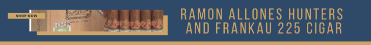 The cigar is based on the Gordito vitola, measuring 5 ½” x 50, except it features a dropped head, or ‘Cabeza Tumbada’. The Ramon Allones Hunters and Frankau 225 Cigar was aged in the UK in a condition-controlled warehouse for two years prior to their release.