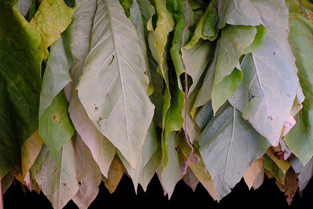 A smaller white stain, the size of a sesame seed, reveals that the tobacco leaf had a Cercospora fungus infection before it was harvested. This fungus feeds in the chlorophyll in the leaf, which is why there are small white marks. It doesn’t affect the integrity of the leaf or impact the taste.