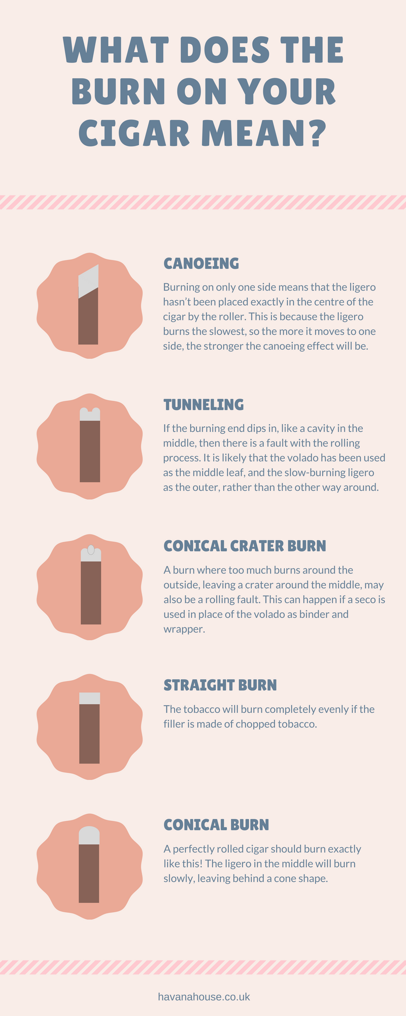 As you can see from the graphic below, there are a number of burn issues that can affect your cigar. While some may not be fixable, with a bit of patience and good lighting technique, you should be able to get these cigars back on track for a better smoke.