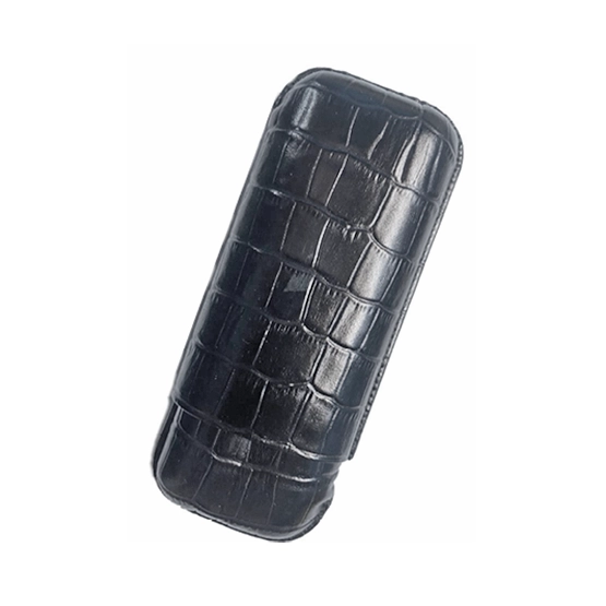 The Croco Leather Cigar Case Black – 2 Robusto is a premium accessory designed to protect and transport two robusto-sized cigars with elegance. Crafted from genuine crocodile-embossed leather, it offers both durability and a sophisticated appearance. The case accommodates cigars up to a 60-ring gauge, ensuring a snug fit for most robusto cigars. Its compact dimensions make it convenient for travel, while the luxurious finish adds a touch of class to any cigar enthusiast’s collection.