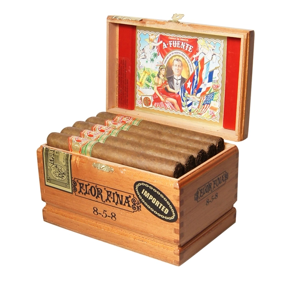 The Arturo Fuente Gran Reserva Flor Fina 8‑5‑8 is a premium Corona Grande (6¼″ × 47) handcrafted in the Dominican Republic with aged Dominican long-fillers and binder beneath a silky Cameroon wrapper. This medium-bodied smoke delivers nuanced notes of cedar, roasted nuts, leather, and cocoa, with gentle spice. It offers impeccable construction, smooth draw, and an even burn—ideal for a refined, approximately 40-minute, everyday smoke.