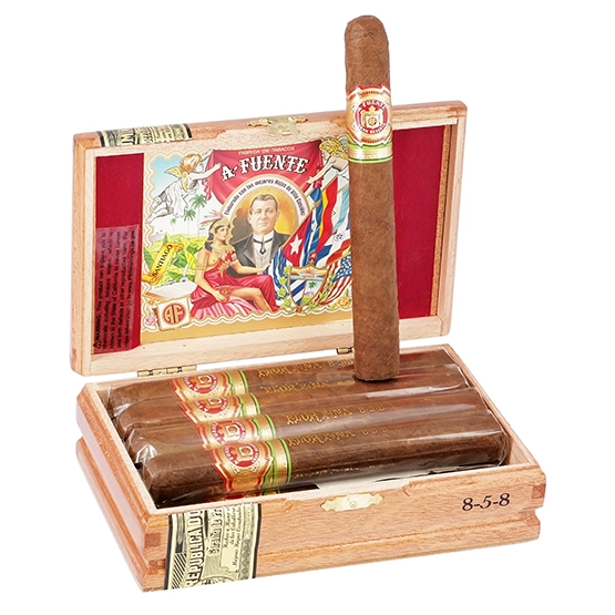 The Arturo Fuente Gran Reserva Flor Fina 8‑5‑8 is a premium Corona Grande (6¼″ × 47) handcrafted in the Dominican Republic with aged Dominican long-fillers and binder beneath a silky Cameroon wrapper. This medium-bodied smoke delivers nuanced notes of cedar, roasted nuts, leather, and cocoa, with gentle spice. It offers impeccable construction, smooth draw, and an even burn—ideal for a refined, approximately 40-minute, everyday smoke.