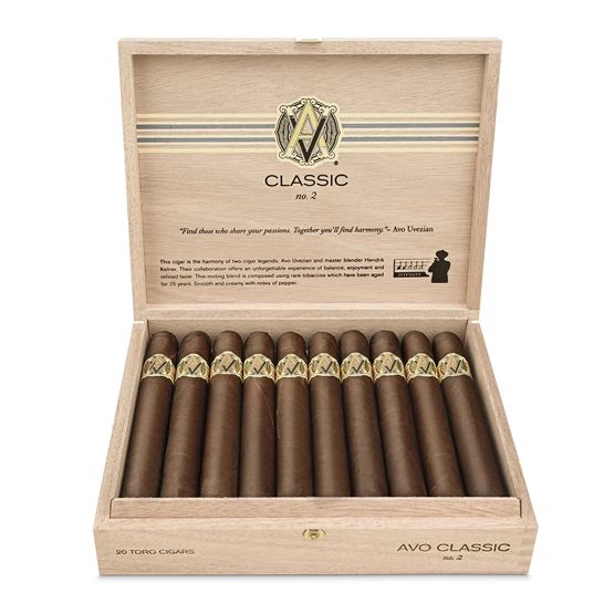The AVO Classic Toro is an iconic cigar that embodies the legacy of Avo Uvezian, the legendary musician and cigar maker whose vision and passion shaped one of the world’s most celebrated brands. Measuring 6 inches in length with a 50-ring gauge, this elegant Toro format delivers a smooth, unhurried smoking experience that has become a staple in the premium handmade market.