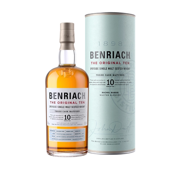 Benriach 10 Year Old balances fruity spirit with bourbon, sherry, and virgin oak maturation, offering layers of fruit, sweet vanilla, and a gentle spice.