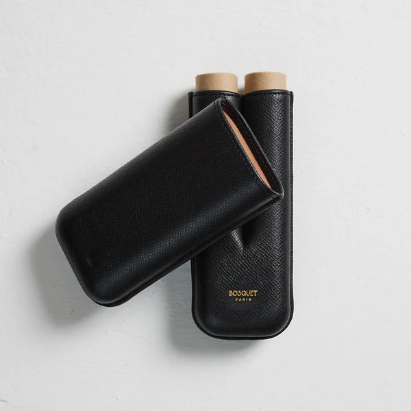 Bosquet Paris Black Grained Calf Leather Cigar Case – 2 Cigars