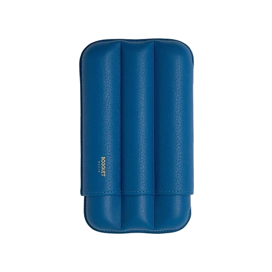 The Bosquet Paris Fluted Capri Blue Grained Calf Leather Cigar Case is a luxurious accessory crafted in France, showcasing refined elegance and craftsmanship. Made from premium grained calf leather in a vibrant Capri Blue finish, it securely holds up to three cigars of up to 60 ring gauge. The interior features smooth, vegetable-tanned leather to preserve cigar freshness and prevent damage. Its five-ply construction ensures durability, while minimal visible stitching gives it a clean, sophisticated look. Embellished with a 22-carat gold Bosquet Paris signature, this lightweight yet sturdy case is an ideal companion for refined cigar enthusiasts.