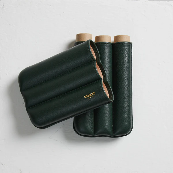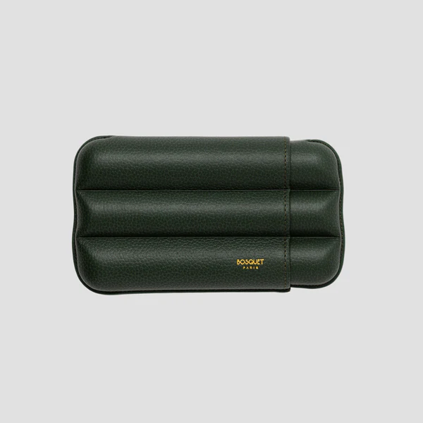 Bosquet Paris Fluted Forest Green Grained Calf Leather Cigar Case – 3 Cigars