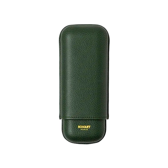 The Bosquet Paris Forest Dark Green Grained Calf Leather Cigar Case for two cigars is a sophisticated accessory crafted in France. Made from premium grained calf leather, it combines durability with a luxurious feel. The sleek cylindrical design holds two cigars with a ring gauge of up to 60, while the vegetal leather interior helps maintain freshness. Compact and lightweight, it is perfect for travel, and its minimal stitching and subtle 22-carat gold Bosquet Paris signature add elegance. This case blends practicality with refined style, making it an essential companion for cigar enthusiasts.