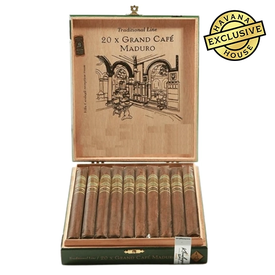 This Grand Café was created to satiate the desire for a darker wrapper leaf. So the Brazilian Cubra wrapper of the original was substituted with the natural Maduro Ecuadorian Corojo. To balance the cigar we replaced the Pennsylvania Broadleaf of the original Grand Café with Peruvian Pelo Del Oro. The result was a richer bodied cigar emanating more dark chocolate and coffee tones.