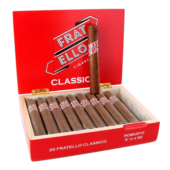 The Fratello Classico Robusto (5 ½” x 52) is a beautifully balanced, medium-strength cigar designed for consistent, everyday enjoyment. This handmade Nicaraguan blend features an oily Nicaraguan Habano wrapper paired with a flavorful Ecuadorian Sumatra binder.