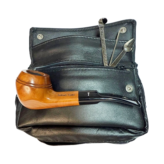 The Frederick Tranter Bent Rhodesian Pipe Starter Kit is a refined introduction to traditional pipe smoking. It features a beautifully crafted bent Rhodesian pipe with a rich root finish, offering comfort and balanced handling. Complementing the pipe is a premium Spanish leather tobacco pouch with an expandable gusset to keep tobacco fresh, along with a practical 3-in-1 pipe tool for tamping, cleaning, and maintenance—everything needed for an enjoyable, classic smoking experience.​