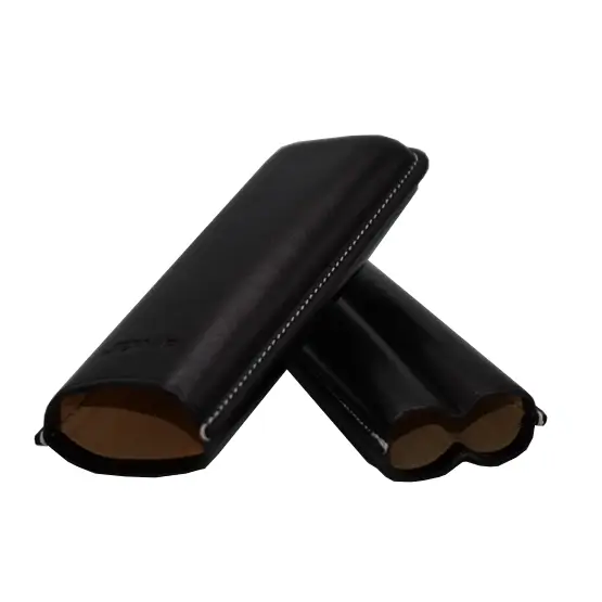 The Jemar Black Leather Cigar Case is a classic example of fine Spanish workmanship. The fresh, white stitching gives a premium feel to the case. This would be the perfect gift for a fellow aficionado who likes to travel on the move. Jemar only use top grade, naturally tanned, quality leather that is free of chemicals. This creates a light, smooth and chic finish to every cigar case. Black leather cigar case for 2 Corona size cigars.