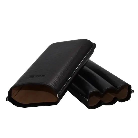 Black leather cigar case for 3 Corona size cigars