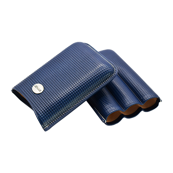 Blue leather cigar case for 3 Robusto/Edmundo size cigars.