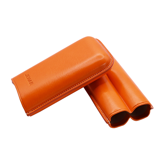 Jemar Orange Leather Cigar Case – 2 Robusto