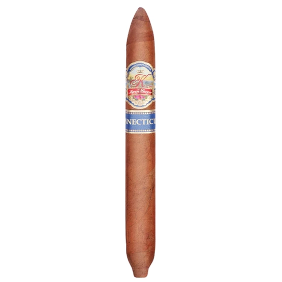The K by Karen Salomon Connecticut is a sophisticated and refined cigar that offers a smooth, mellow smoking experience perfect for those who appreciate a creamy, well-balanced smoke with nuanced flavors. The Salomon size, which measures 7 inches in length with a 52-ring gauge, is known for its unique shape, often tapering towards the head, which allows for a gradual evolution of flavors throughout the smoking experience. This format provides an excellent balance of time and flavor, giving smokers the opportunity to savor the complexities of the blend over a longer smoking session. Wrapped in a silky Ecuadorian Connecticut leaf, the Salomon Connecticut is a cigar that stands out for its smooth, mild-to-medium strength and elegant profile.