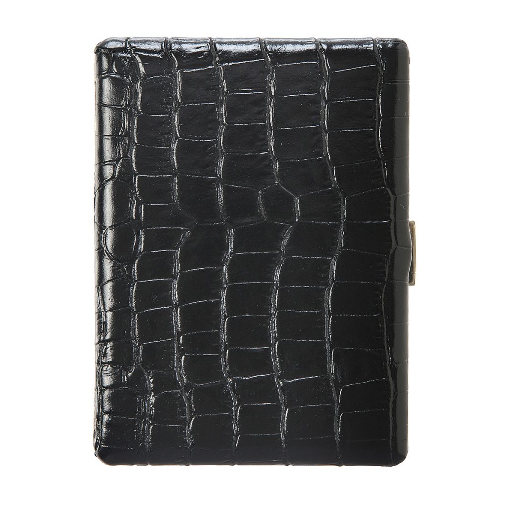 This elegant cigarette case from Tsubota Pearl can hold 9 superking cigarettes, or 12 regular cigarettes. These fine cigarette cases are made in Japan using Croco pattern leather and brass.