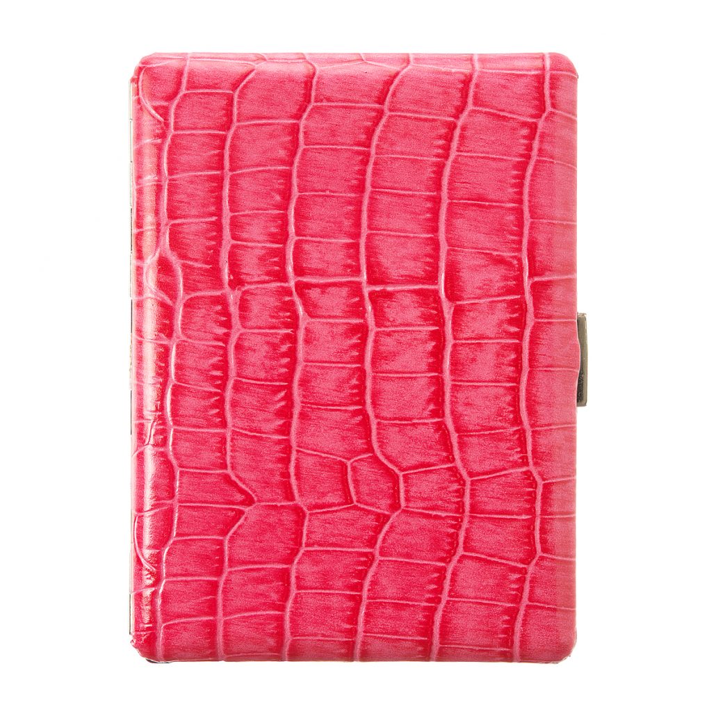 This elegant cigarette case from Tsubota Pearl can hold 9 superking cigarettes, or 12 regular cigarettes. These fine cigarette cases are made in Japan using Croco pattern leather and brass.