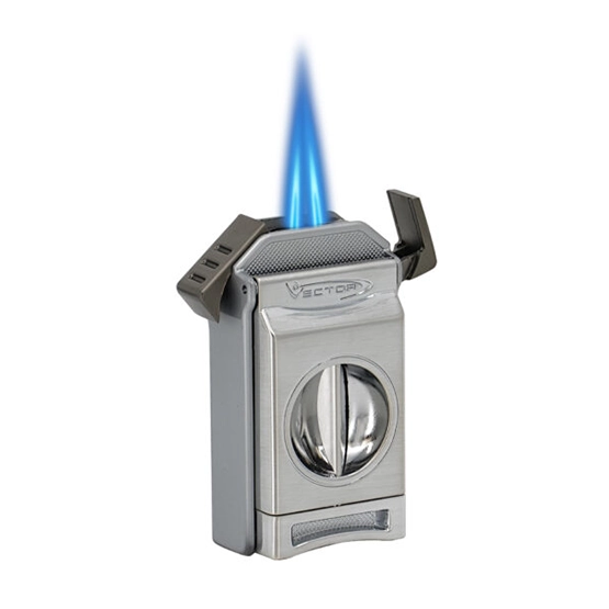 The Vector Switch is a sleek and versatile accessory designed for cigar enthusiasts, combining the functionality of a powerful twin jet flame lighter and a precision cutter in one compact device. Its sophisticated black matte finish is both modern and resistant to fingerprints and scratches, ensuring it maintains its elegant appearance over time. The built-in cutter provides convenience, allowing for a clean and precise cut for an optimal smoking experience. Refillable with butane fuel, this lighter is both sustainable and cost-effective. It features an adjustable flame for controlled use and is designed to be wind-resistant, making it reliable even in outdoor conditions. With its combination of style, practicality, and performance, this lighter is perfect for personal use or as a thoughtful gift for cigar lovers.
