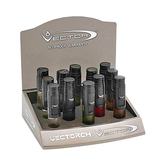 The Vector Turbine Single Jet Flame is a robust torch lighter designed to meet the needs of cigar aficionados who demand both power and precision. Built with a wind-resistant single-jet torch flame, it delivers a fierce and steady ignition, ensuring reliable lighting even in breezy conditions. The turbine mechanism refers to its enhanced burner design, which efficiently channels air and fuel to produce a consistent and focused flame that tolerates altitude changes. As with other Vector products, it comes with the “No Proof Warranty,” so owners need not prove purchase when seeking service or repair. Features typically include flame height adjustment for fine control, a refillable butane fuel chamber, and fuel-level visibility, allowing users to monitor remaining fuel at a glance. Its body is constructed with durable materials, often incorporating rubberised or textured grip surfaces for secure handling. The profile is compact yet weighty enough to feel substantial, lending confidence in its performance. Elegant yet rugged, the Vector Turbine pairs functional strength with aesthetic simplicity. Ideal for cigar lovers who value efficiency, reliability, and refined design, it makes no sacrifice in power while maintaining a user-friendly build.