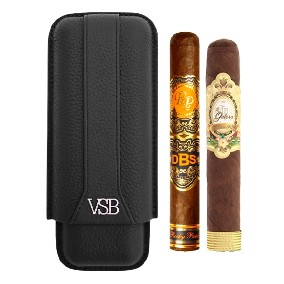 Celebrate the festive season with the VSB Black 2 Finger Leather Case with Rocky Patel DBS Robusto and La Galera Corojo Robusto Christmas Cigar Deal—a luxurious pairing crafted for aficionados who appreciate quality, craftsmanship, and refined flavour.