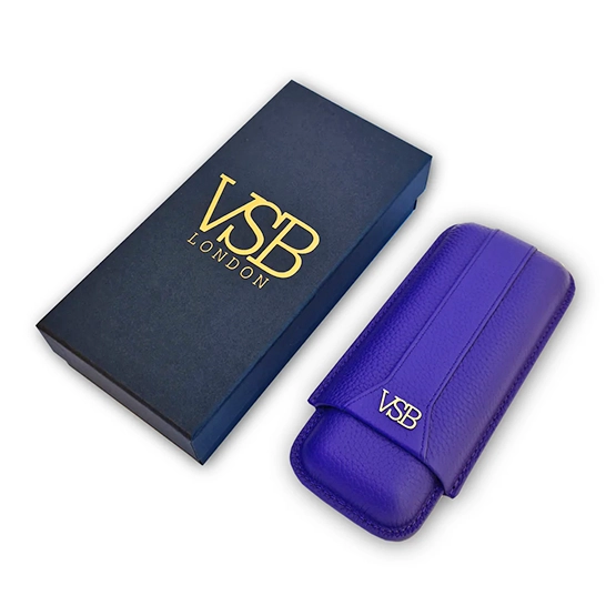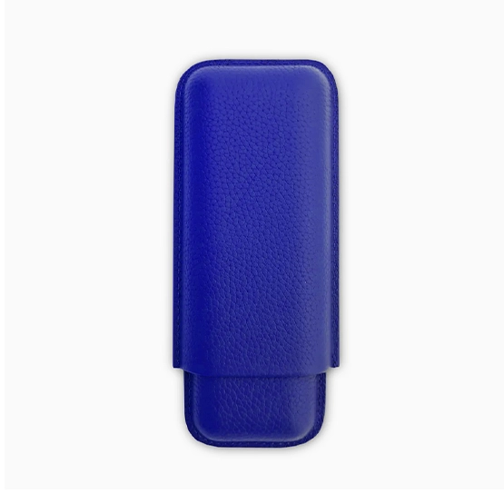 The VSB Blue Leather Cigar Case – 2 Robusto is a luxury two-finger telescopic case, beautifully crafted from the finest top-grain calf leather. Its rich blue finish offers a modern, stylish look while maintaining the classic elegance every cigar aficionado appreciates. Soft yet structured, it securely holds two cigars up to 60 ring gauge (24mm), providing excellent protection on the go. The interior is lined with VSB’s signature, highly wear-resistant red velvet, ensuring your cigars remain cushioned and perfectly preserved. Measuring 70mm wide and 175mm when closed, it is ideal for Robustos and Churchills. A refined, durable essential for the discerning cigar lover.