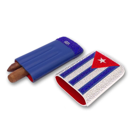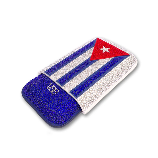 VSB London brings you yet again one of the world’s most stunning cigar cases – our Swarovski Crystal Cuban Flag Cigar Case. This show piece contains more than 5000 hand applied genuine Swarovski crystals.