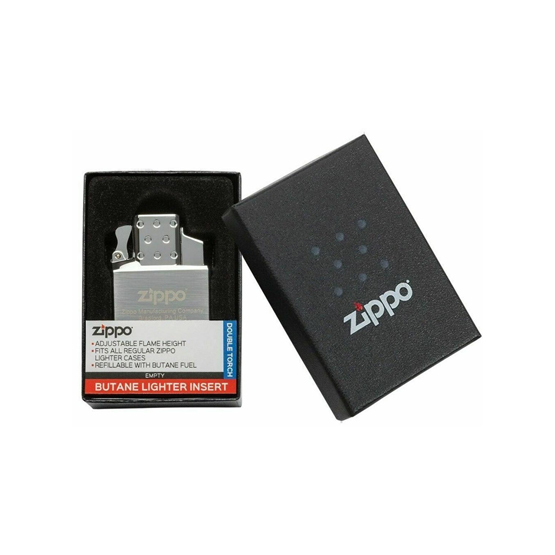 The Zippo Butane Lighter Insert – Double Cigar Jet Flame delivers two powerful, wind-resistant blue flames for precise cigar lighting. Crafted from durable metal, this refillable insert fits standard Zippo lighter cases (excluding Slim, Armor, or 1935 Replica models), offering up to 60 five-second lights per fill with premium butane.